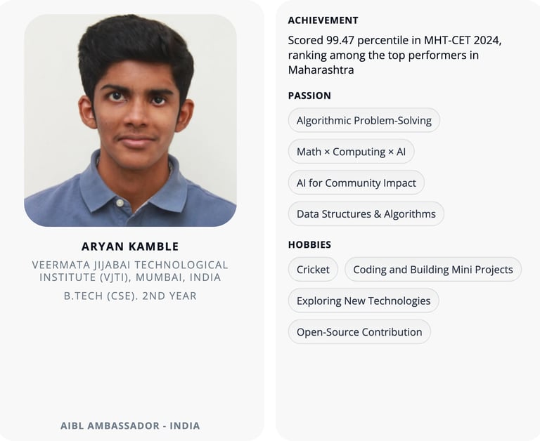 A student-led initiative where students explore AI and use it to solve real-world problems. With guidance from experienced technology mentors, we are building a platform for hands-on learning, research, and innovation.